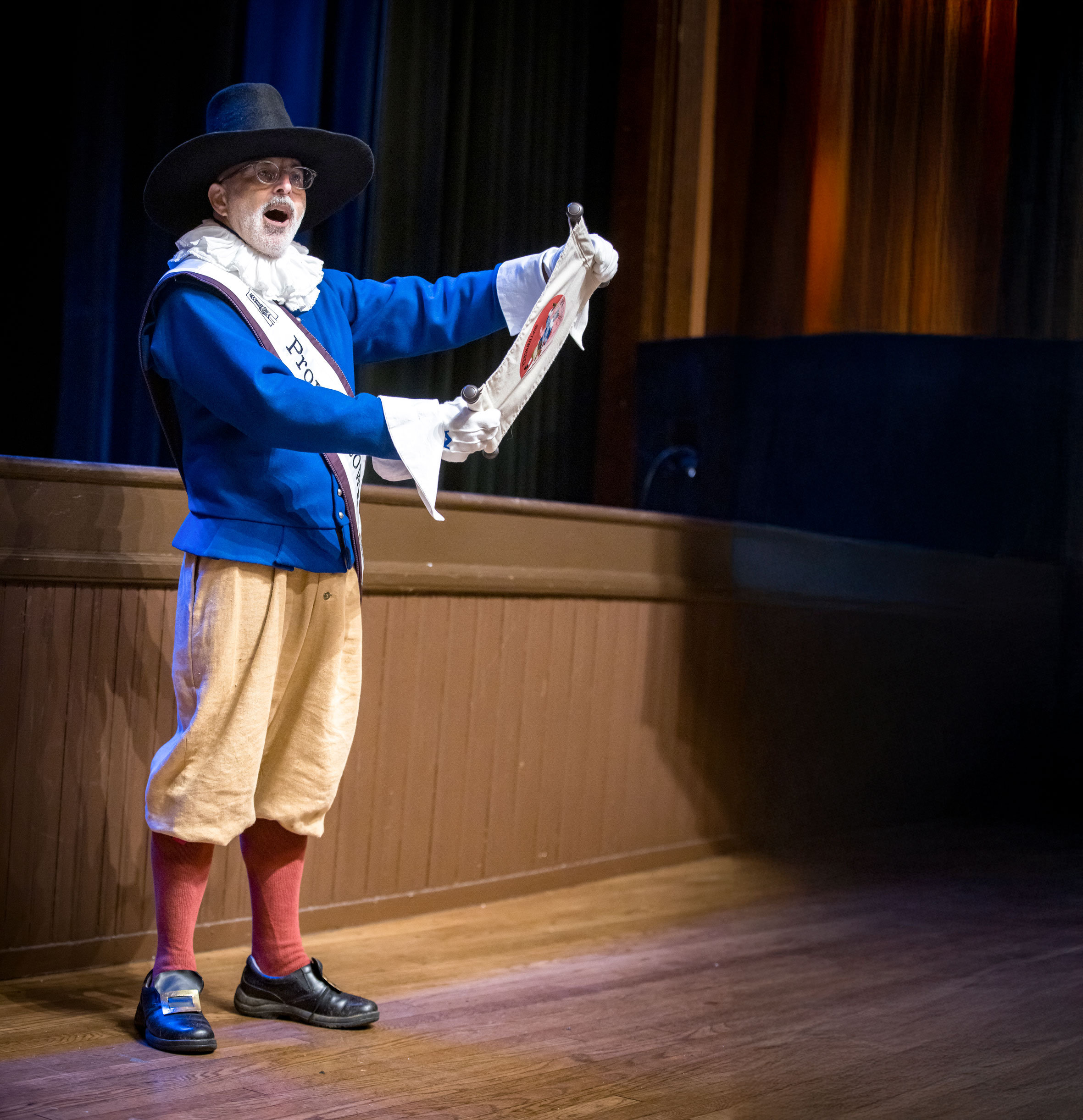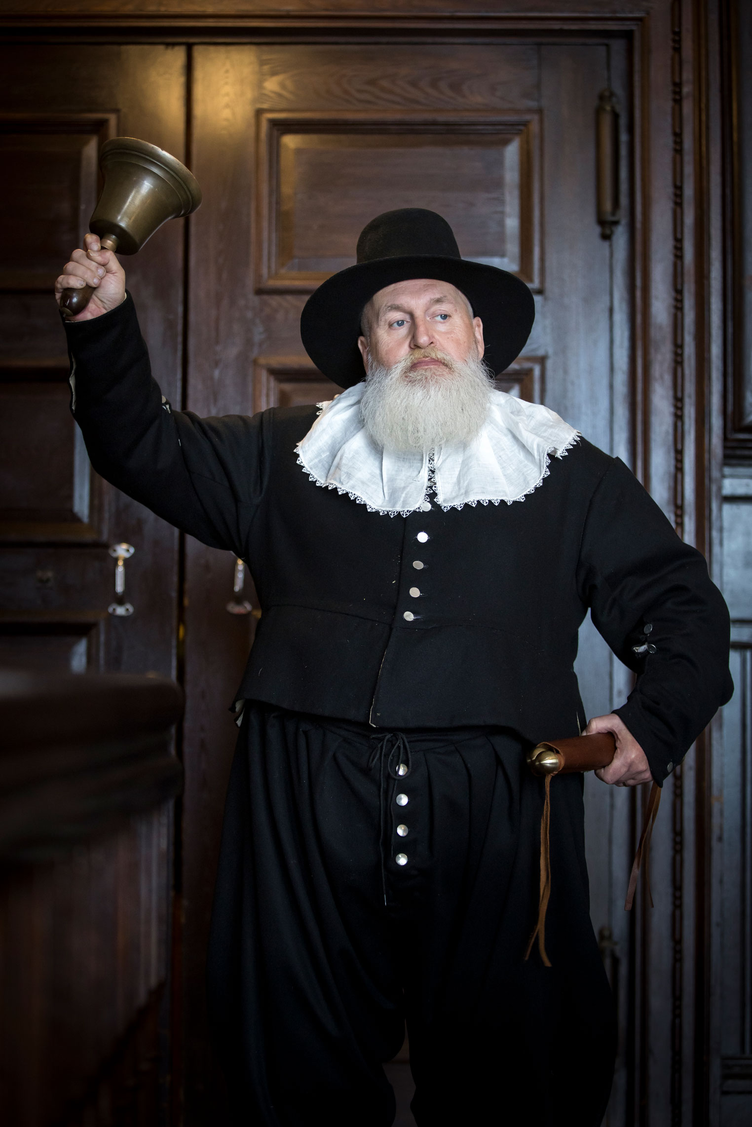 Today, Llata’s role is a combination of reverential pastiche and original interpretation. He is keen on maintaining fidelity to historically accurate wardrobe and accoutrements. One of his bells was made by Whitechapel Bell Foundry, the renowned London manufacturing company (think Liberty Bell and Big Ben). He calls it “Dorothy” in homage to Dorothy Bradford, a passenger on the Mayflower along with her husband, William Bradford, the future governor of Plymouth Colony. Mysteriously, on December 7, 1620, she fell off the ship into the freezing waters of Provincetown Harbor and drowned. Her body was never found.