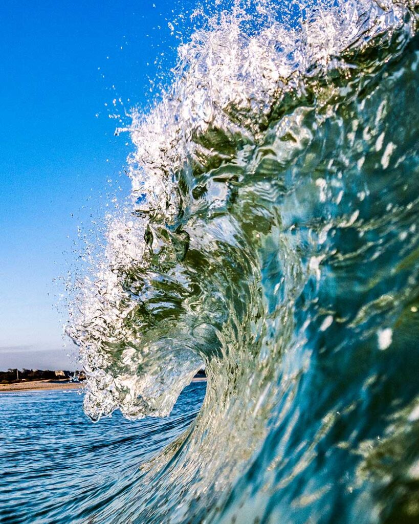 Initially, I tried taking photos from my kayak. Then I bought waders, and a friend gave me a wetsuit and some winter swim gear to really go all in. I added camera equipment, such as a smaller and lighter mirrorless camera, and a waterproof camera housing that is able to go underwater for up to 40 meters. From initially capturing sunset reflections and ripples, I progressed to wave crests and barrels.