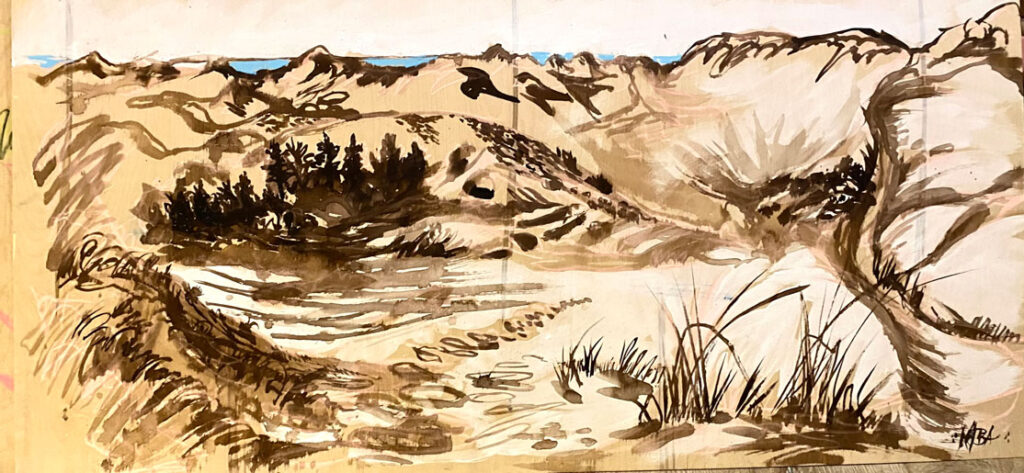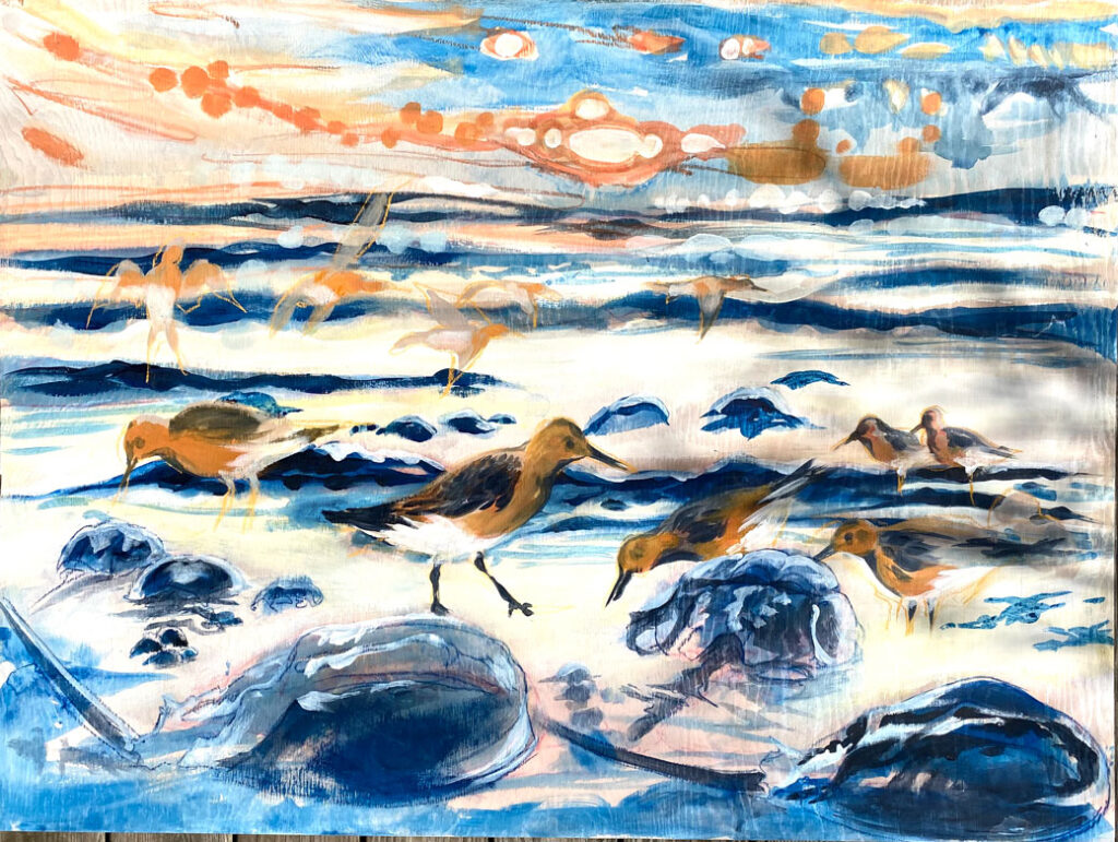 While Adams has traveled extensively, and lived in California, England, Boston, and Martha’s Vineyard, he fell in love with the Outer Cape in 1991 and hasn’t left since. He felt drawn to the region’s sense of community, particularly among artists, and to the dichotomy of how the towns feel small and yet are so culturally rich. During his time on-Cape, he has taught at some of the peninsula’s finest art organizations and is currently the Center for Coastal Studies’ first-ever Scientist/Artist-in-Residence.