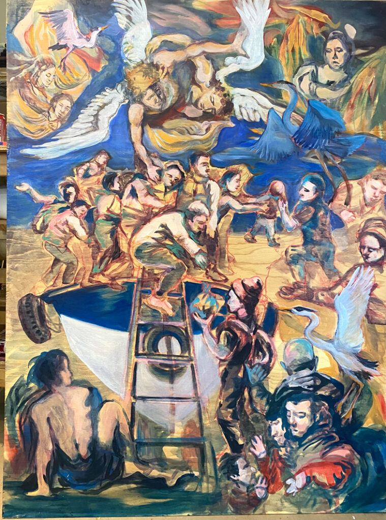 Most recently, Adams has been exploring the concepts of migration and immigration. “I started out as an environmentalist, and I’ve studied the migration of various animals, but people also migrate if the need arises,” he asserts. “Just like animals, they journey to find refuge and a better life.” Ultimately, he is challenging preconceptions and assumptions about who and what belongs where.